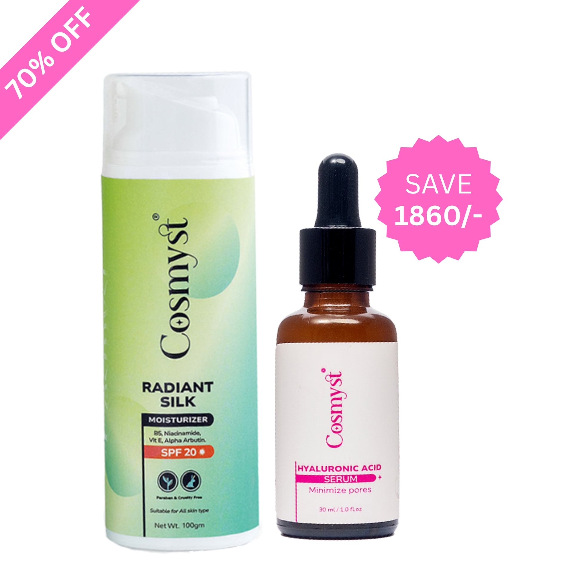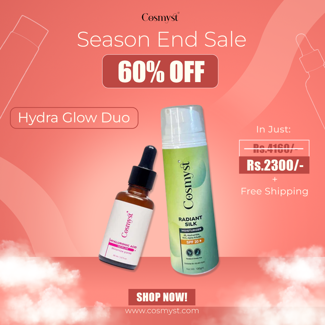Hydrate your skin with the ultimate hydration duo: Radiant Silk Moisturizer and Hyaluronic Acid Serum. This powerhouse combo nourishes, repairs, and rejuvenates for a radiant, youthful glow.