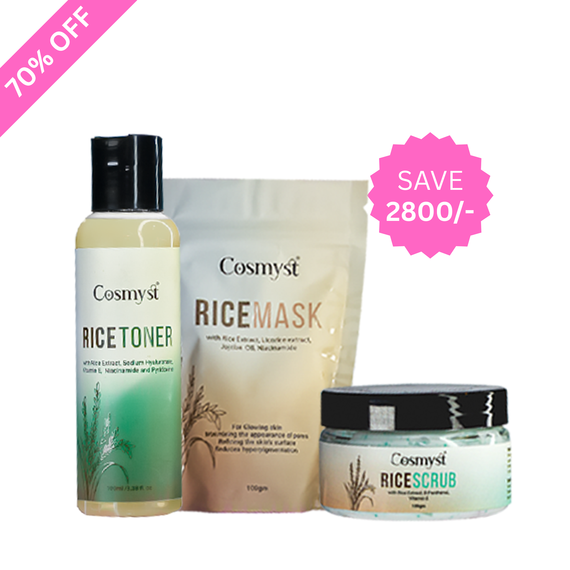 Elevate your skincare routine with our Rice Skincare Kit, a luxurious trio designed to exfoliate, nourish, and rejuvenate your skin. Combining the ancient beauty secret of rice extract with potent actives, this kit ensures your skin looks and feels its best, radiating a youthful, glass-like glow.