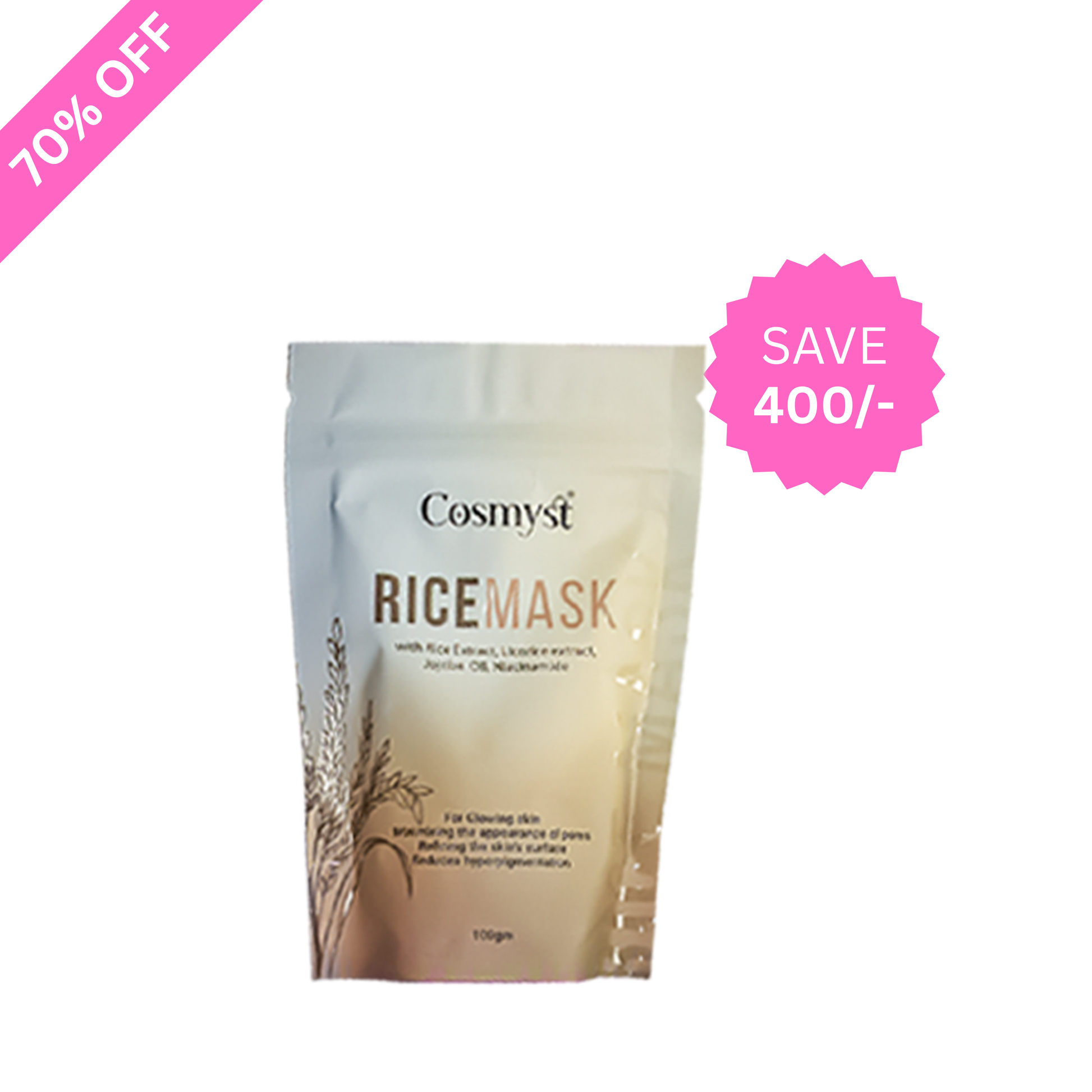 - Start with cleansed face. Use Cosmyst rice scrub to remove any makeup, dirt, and oil.