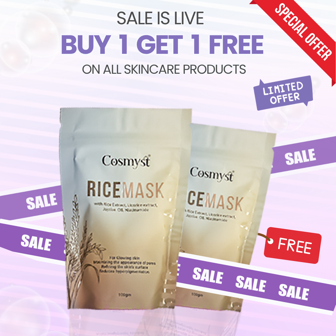 - Start with cleansed face. Use Cosmyst rice scrub to remove any makeup, dirt, and oil.